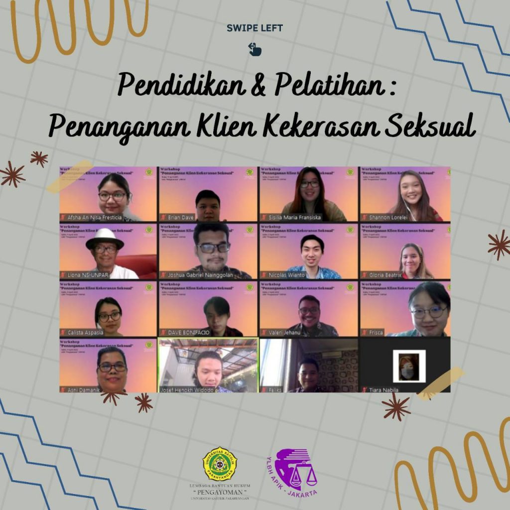 Pada tanggal 9 April 2022, Lembaga Bantuan Hukum “Pengayoman” Universitas Katolik Parahyangan bersama dengan Lembaga Bantuan Hukum Asosiasi Perempuan Indonesia Untuk Keadilan mengadakan Pendidikan dan Pelatihan: Penanganan Klien Kekerasan Seksual.