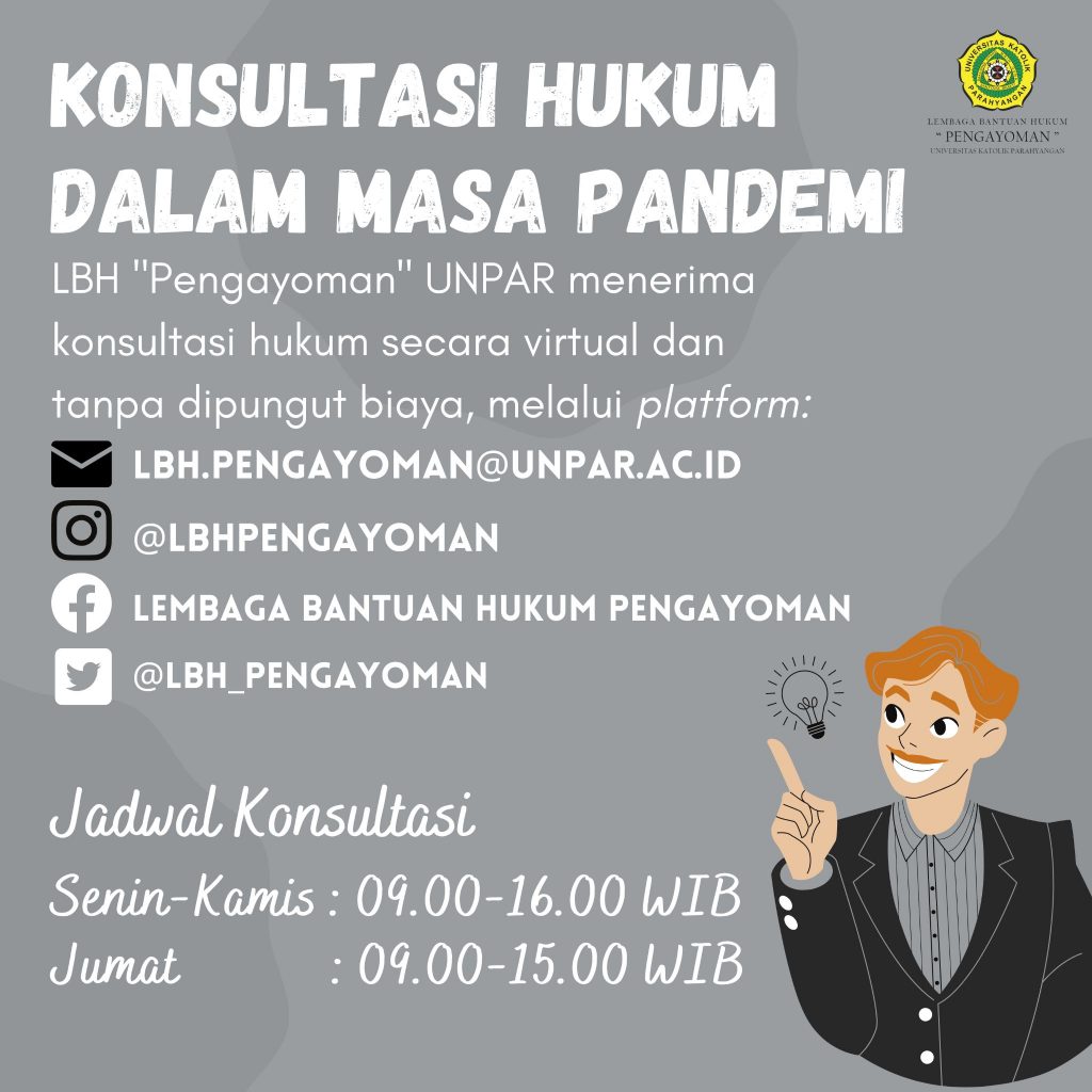 Selama masa pandemi, LBH “Pengayoman” Universitas Katolik Parahyangan tetap menerima konsultasi hukum secara virtual melalui :